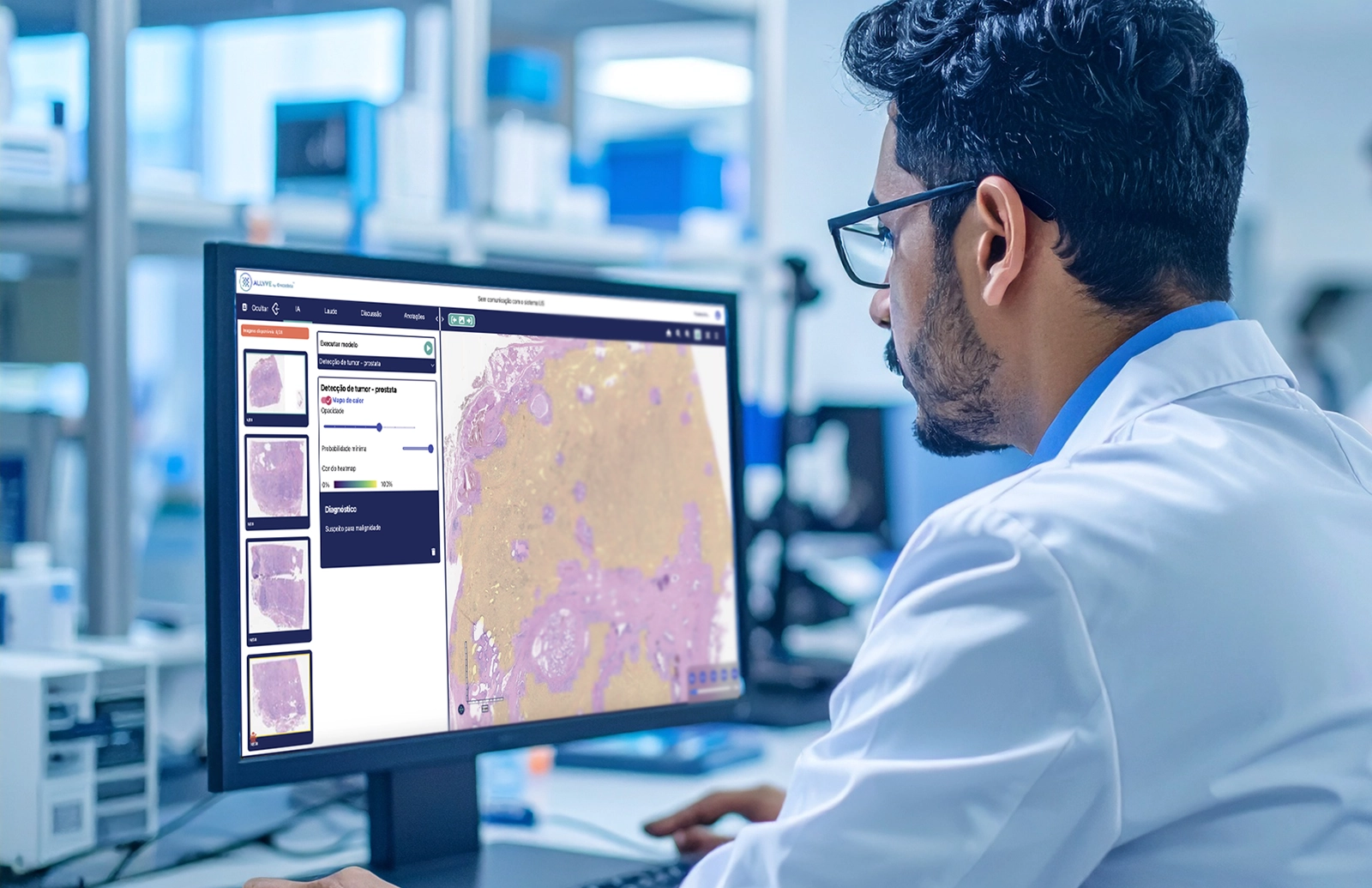 - Maior precisão diagnóstica: Reduz riscos de erro ao identificar alterações sutis e padrões complexos em lâminas digitalizadas.